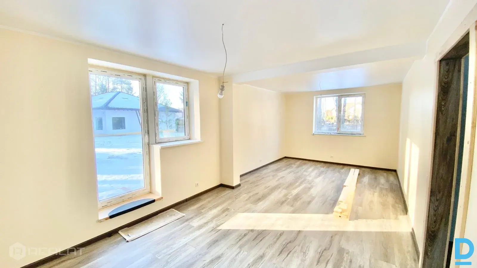 Ekspluatācijā nodota jaunbūvēta, kvalitatīva ģimenes māja lieliskā lokācijā- Dzidriņu centrā, mierpilnā ielā blakus mežam. Plānojums 1.Stāvā atrodas virtuve, viesistaba, viena guļamistaba/kabinets, dušas telpa, tehniskā telpa un niša mantu uzglabāšanai. Pirmajam stāvam ir pilnībā pabeigta iekšējā apdare. Gan no virtuves zonas, gan viesistabas ir durvis uz nelielām āra terasēm, kuras iespējams paplašināt. Pirmais stāvs ir ar pilnu apdari un gatavs dzīvošanai. Guļamistabas/kabineta un WC durvis aprīkotas ar paaugstinātu skaņas izolāciju. 2.stāvā ir izvietota kopīga dzīvojamā istaba, izolētas 3 guļamistabas, vannas istaba un papildus zona, kur var izvietot gan veļasmašīnu un žāvētāju, gan mini virtuvi. Vienai guļamistabai ir papildus garderobes/kabineta telpa. No divām guļamistabām ir izeja uz āra balkoniem, kas rada papildus dabas klātbūtni arī atrodoties augšstāvā. Otrajā stāvā divas guļamistabas drīz tiks pabeigtas ar pilno apdari, savukārt pārējās telpas ir baltajā apdarē, ļaujot jaunajiem īpašniekiem tās pabeigt pēc savas gaumes. Tehniskā info Apkuri nodrošina gaiss–ūdens siltumsūknis (11 kW). Pirmajā stāvā ir izbūvētas siltās grīdas, otrajā stāvā ir jāuzstāda radiatori. Komunikācijas: elektrības pieslēgums, ūdens no 20 m dziļa urbuma, vietējā kanalizācija. Plātņveida pamati ar 200 mm siltinājumu. 1.stāvs: gāzbetona sienas, siltinātas ar 150 mm Rockwool vati, apšūtas ar ēvelētiem koka dēļiem, siltās grīdas. 2.stāvs: koka karkasa konstrukcija ar 200 mm Rockwool siltinājumu, paredzēti regulējami radiatori. Jumts: profilētais skārds ar 250 mm Paroc vati. Pakešu logi ar 70 mm Aluplast rāmjiem. Lokācija Māja atrodas pie Rīgas pilsētas meža, kas nodrošina svaigu gaisu un mierīgu vidi. Teritorijā nepastāv applūšanas risku. Ērta infrastruktūra ģimenēm – netālu ir skolēnu autobusa pietura, kas ved uz Ulbrokas vidusskolu, turklāt uz skolu var aiziet 20 minūtēs vai doties ar velo. Netālu atrodas ezers ar peldvietām, kultūras centrs “Ulbrokas Pērle”, bērnudārzs, aptiekas, ambulance, vairāki veikali, Ulbrokas mūzikas un mākslas skola. 20 minūšu gājiena attālumā Rīgas satiksmes 51.autobusa un Nordeka autobusu pieturas, no kurām var ērti nokļūt gan uz Rīgas centru, gan uz Salaspili, Ogri, Ropažiem. Draudzīgi kaimiņi un ērts piebraucamais ceļš ar melno segumu. Īpašumam nav apgrūtinājumu, iespējams iegādāties uzreiz. Mājai ir pieejama video tūre, kuru nosūtīšu privāti. |
